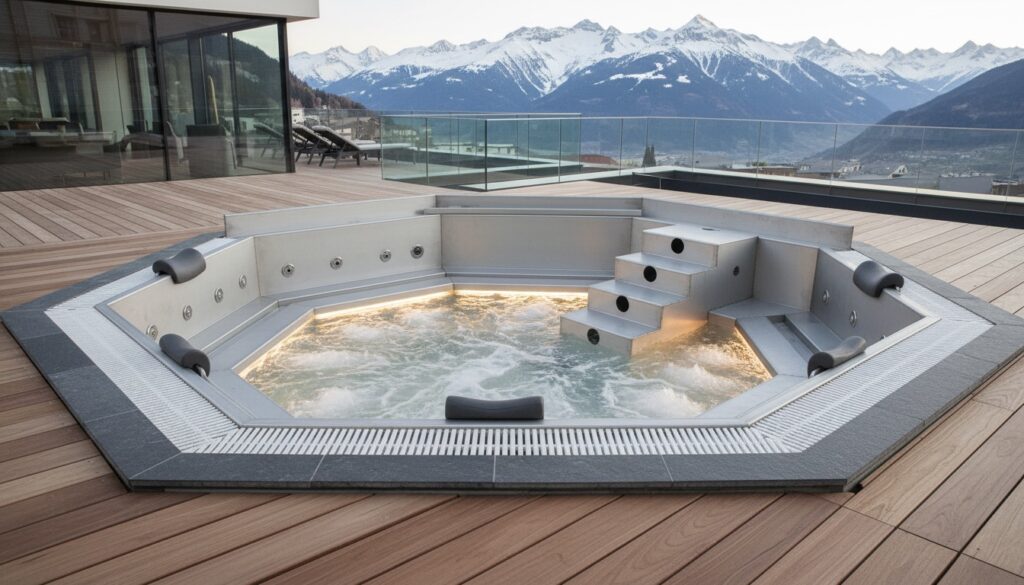L’acier inoxydable 316L, aussi appelé inox marin, est le matériau le plus adapté à la fabrication de cuves de spa destinées à un usage intensif ou premium.